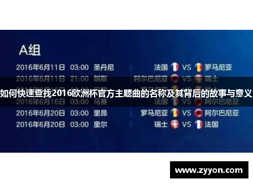 如何快速查找2016欧洲杯官方主题曲的名称及其背后的故事与意义